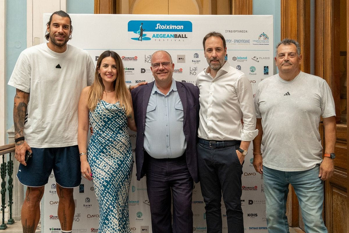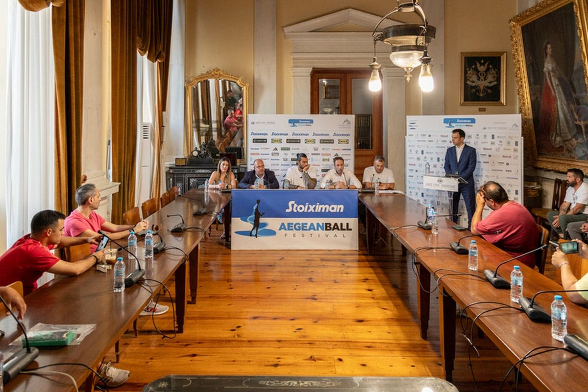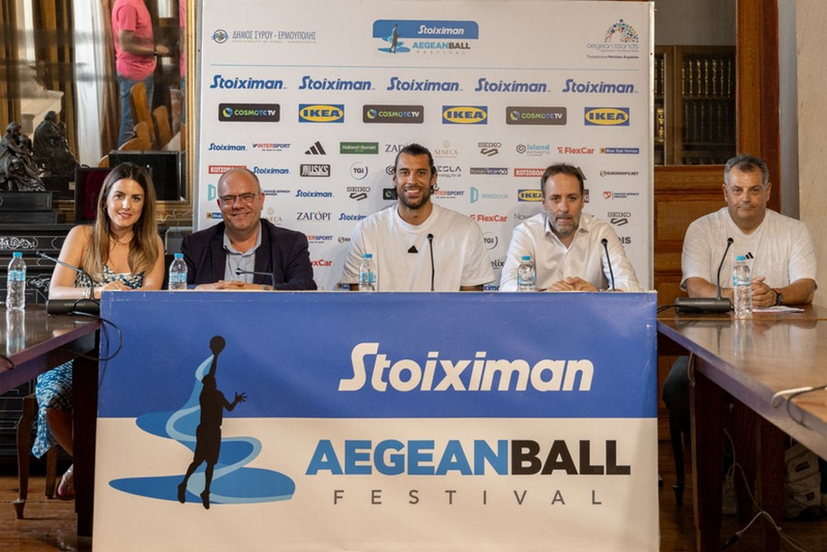 Η σπουδαία γιορτή του μπάσκετ, μετά το πρόσφατο soldout που έκανε στις εγγραφές της, πραγματοποίησε τη συνέντευξη Τύπου της στο εμβληματικό Δημαρχιακό Μέγαρο της Ερμούπολης, παρουσία του εμπνευστή της, του διεθνή μπασκετμπολίστα Γιώργου Πρίντεζη, του Δημάρχου Σύρου-Ερμούπολης, κ. Αλέξανδρου Αθανασίου, του Co-Founderτης Progame, κ. Γιάννη Λάσκαρη, του Υπεύθυνου Αγωνιστικού του Stoiximan AegeanBall Festival, κ. Γιάννη Θεολογίτη και της Corporate Responsibility Senior Manager της KaizenGaming, κας. Ιωάννας Κοζαδίνου.