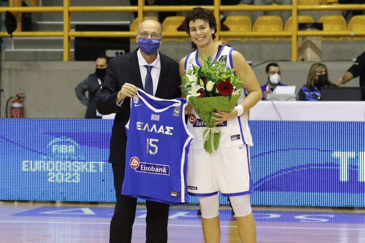 Τιμή για το σπάσιμο του φράγματος των 100 αγώνων με την Εθνική δέχθηκε η Άρτεμις Σπανού το βράδυ της Κυριακής (14/11), με τον Βαγγέλη Λιόλιο να την συγχαίρει για το επίτευγμά της.