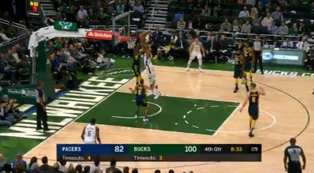 Σε μία σχεδόν άψογη βραδιά, ο ύψους 2.11 μέτρων Γιάννης είδε τον ύψους 1.93 μέτρων σταρ των Πέισερς – ο οποίος είναι πιθανότατα ο καλύτερος μπλοκέρ ανάμεσα στους γκαρντ του ΝΒΑ μαζί με τον Ντάνι Γκριν των Ράπτορς – να τον φιλοδωρεί με μία τρομερή τάπα κατά την διάρκεια της 4ης περιόδου, με τους διαιτητές να δίνουν στη συνέχεια τζάμπολ.