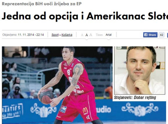 Η συμμετοχή της Βοσνίας/Ερζεγοβίνης στο Ευρωμπάσκετ της επόμενης χρονιάς έχει ανεβάσει τον πήχη των απαιτήσεων. Γι αυτό οι άνθρωποι της ομοσπονδίας θέλουν... τον Έι Τζέι Σλότερ.