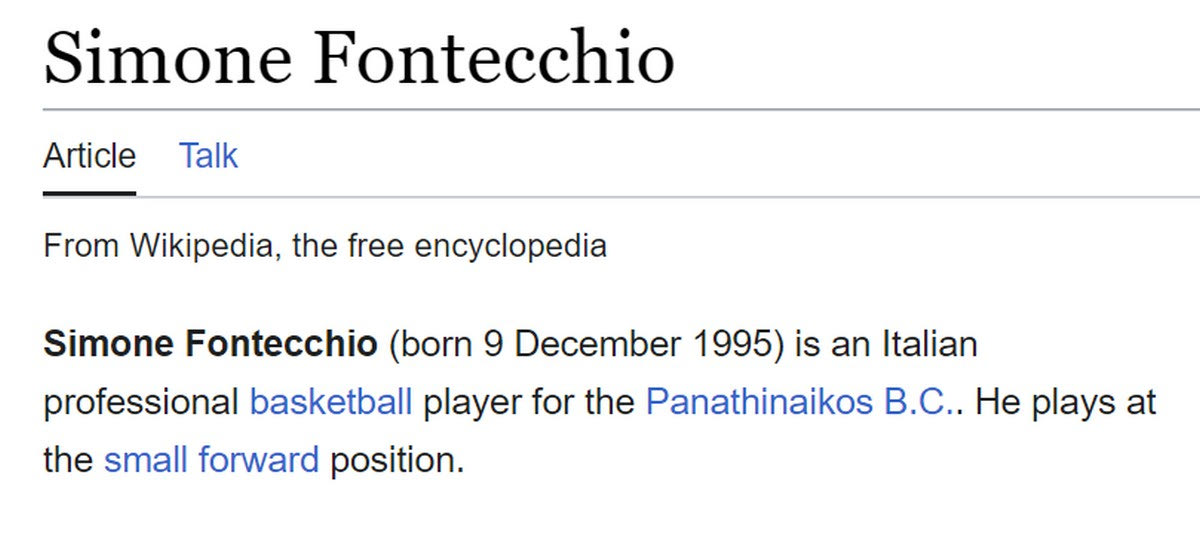 Στα 27 του χρόνια, ο Σιμόνε Φοντέκιο θεωρείται ένας από τους κορυφαίους Ευρωπαίους φόργουορντ. Απλώς μετά από την καταπληκτική του πορεία στο EuroBasket 2022 με την Ιταλία, αποχαιρέτησε την ήπειρο για να παίξει στο NBA. Και παρά το γεγονός ότι έχει συμβόλαιο με τους Γιούτα Τζαζ, το όνομά του ακούγεται όλο και περισσότερο τις τελευταίες ημέρες με αποκορύφωμα την Wikipedia που τον αναφέρει ως αθλητή του Παναθηναϊκού, της ομάδας που έχει σοκάρει τους πάντες το φετινό καλοκαίρι.