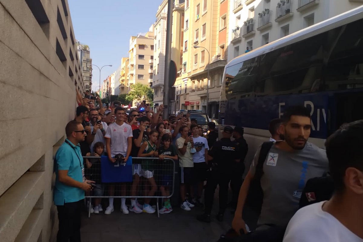 Πολλοί Ισπανοί περίμεναν την άφιξη της αποστολής της Εθνικής Ελλάδας στο Wizink Center, το γήπεδο της Ρεάλ Μαδρίτης, για να δουν, για να χειροκροτήσουν, για να αποθεώσουν τον κορυφαίο μπασκετμπολίστα του κόσμου.
