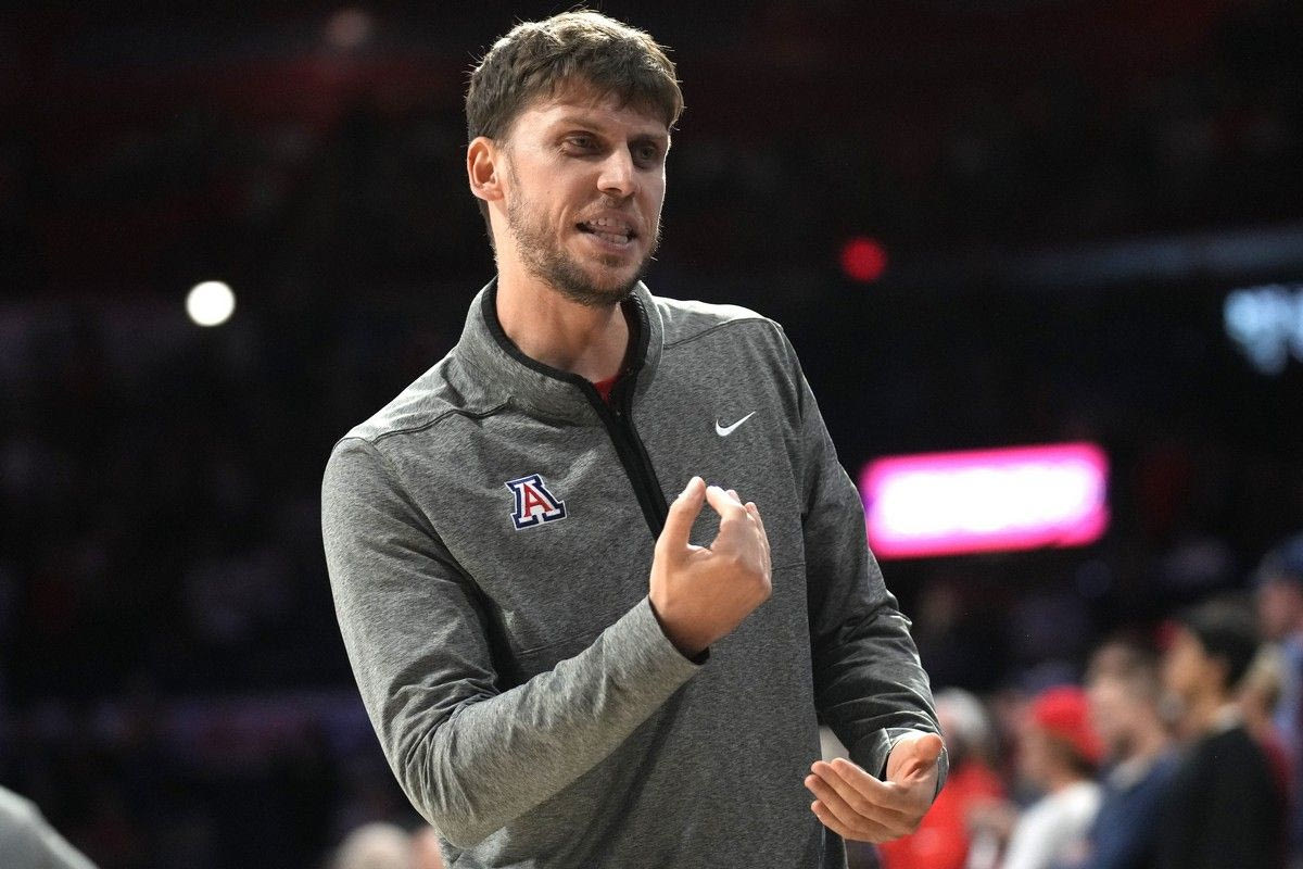 Arizona Riccardo Fois during the first half of an NCAA college basketball game against Southern University, Friday, Nov. 11, 2022, in Tucson, Ariz. (AP Photo/Rick Scuteri)