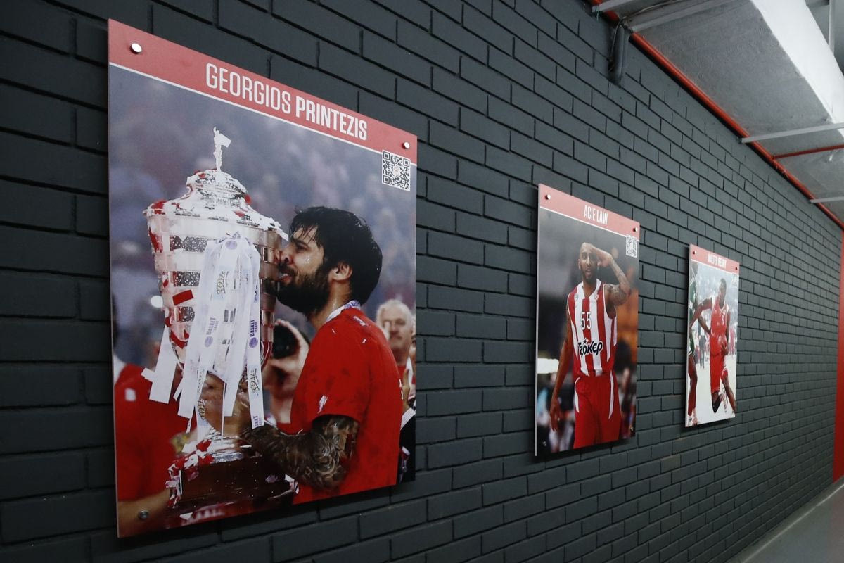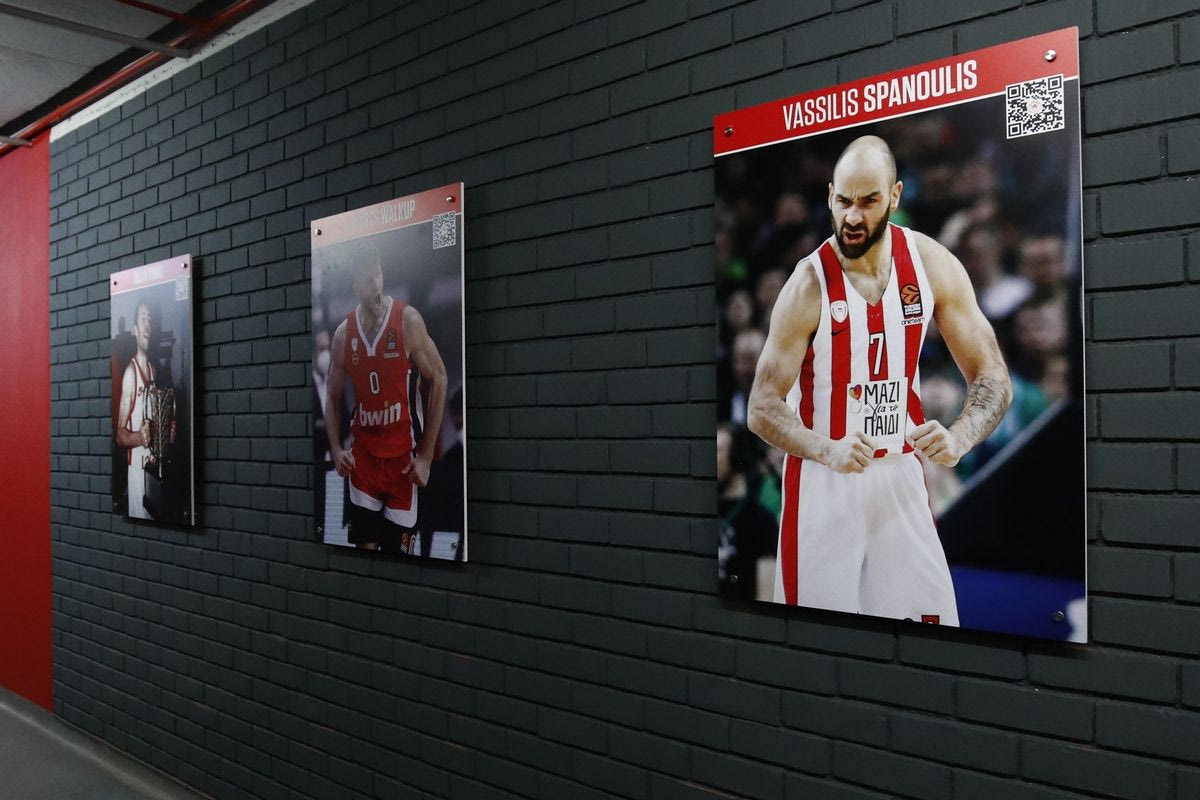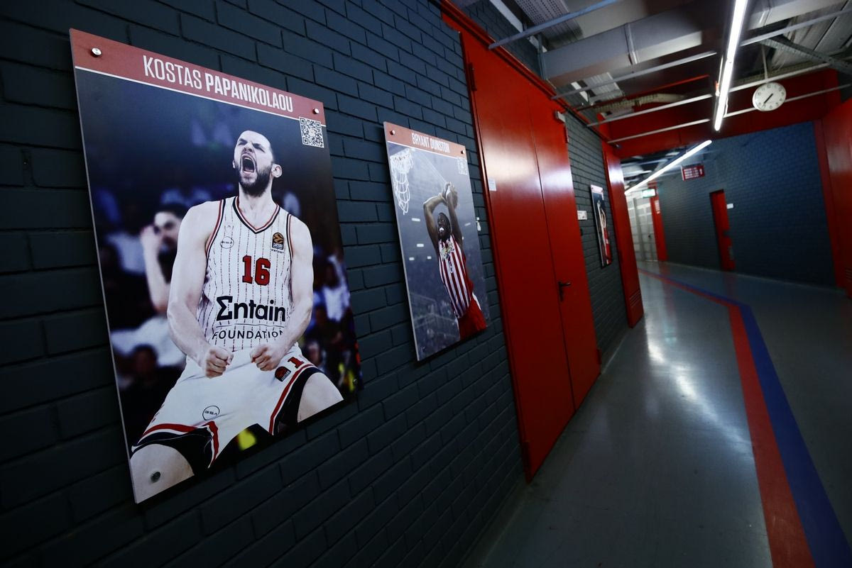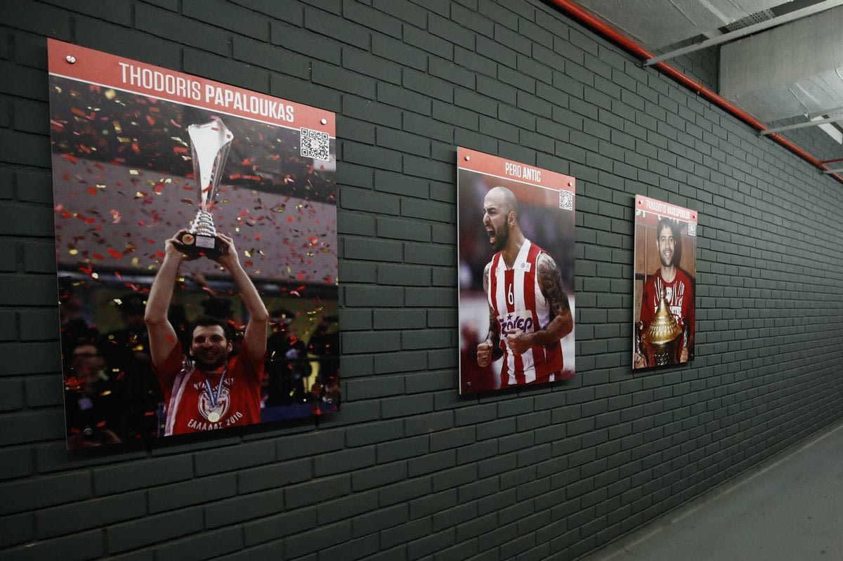 Κάδρα πρώην και νυν παικτών του Ολυμπιακού κοσμούν τον διάδρομο των αποδυτηρίων του ΣΕΦ