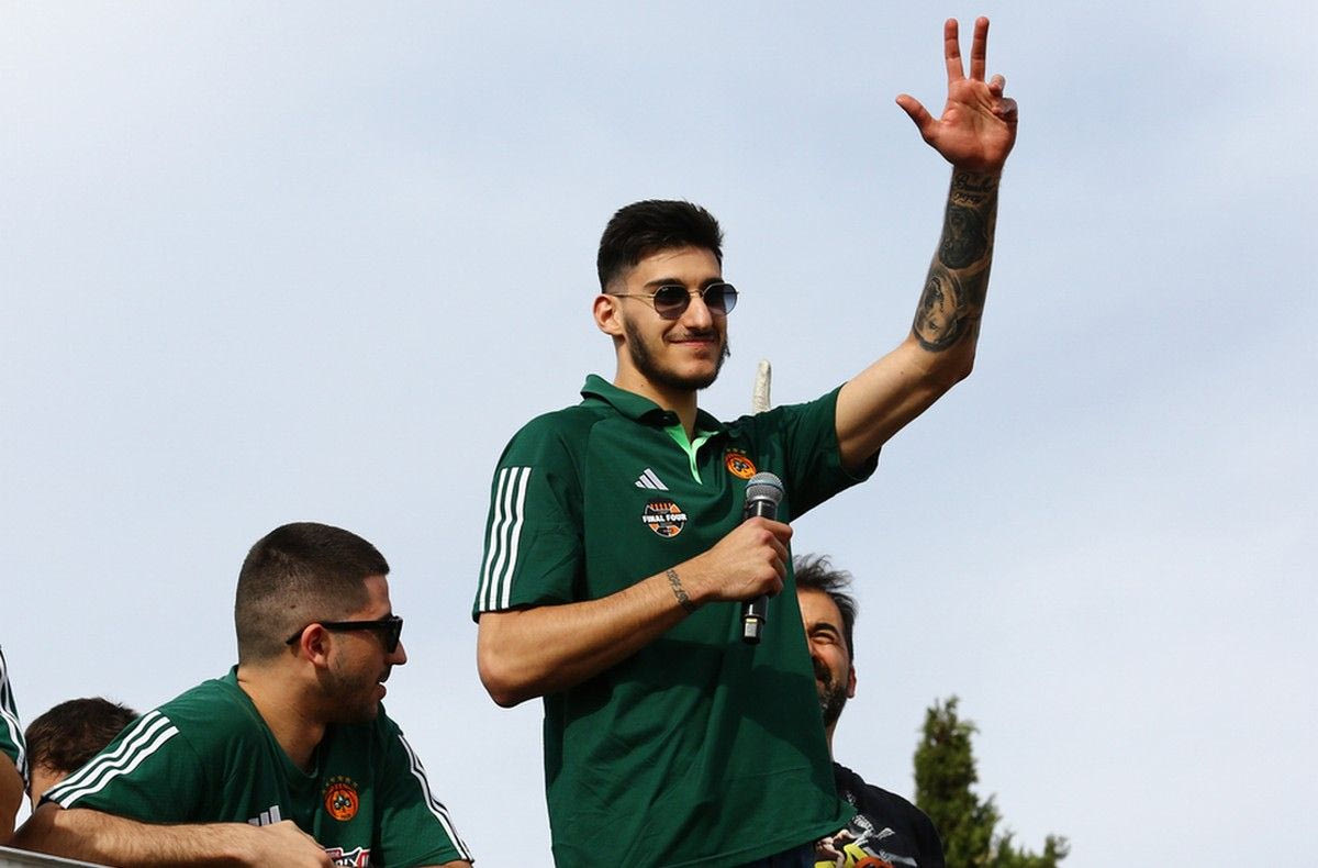“Στη Βαρκελώνη θα είναι ωραία με το όγδοο παρέα”, ήταν το σύνθημα που άρχισε να φωνάζει ο διεθνής φόργουορντ, με τους φίλους του Παναθηναϊκού να ενθουσιάζονται και να τραγουδούν μαζί του, με το βλέμμα στην επόμενο Euroleague.