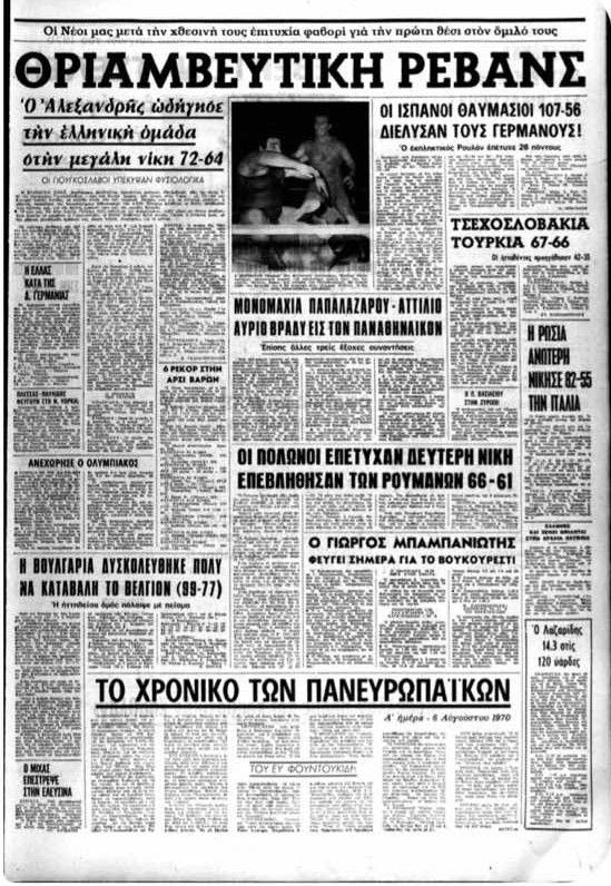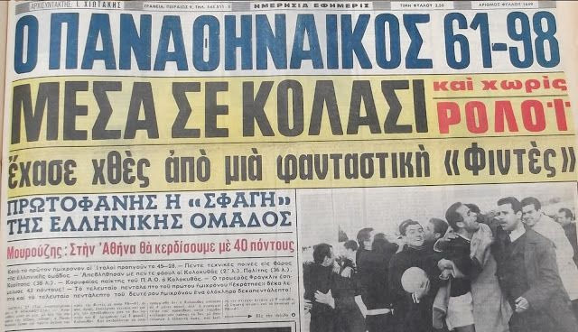 Δέκα ημέρες αργότερα στην πρεμιέρα του EuroBasket στο Καλλιμάρμαρο νικήσαμε τη Ρουμανία και την επόμενη ημέρα θα παίζαμε με τους Γιουγκοσλάβους. Παρακάλεσα λοιπόν τον Ματθαίου να μη γυρίσω με το πούλμαν στις εγκαταστάσεις του Αγίου Κοσμά, όπου μέναμε, αλλά να μου δώσει άδεια για να παρακολουθήσω το ματς των Γιουγκοσλάβων και να κάνω το δικό μου scouting.