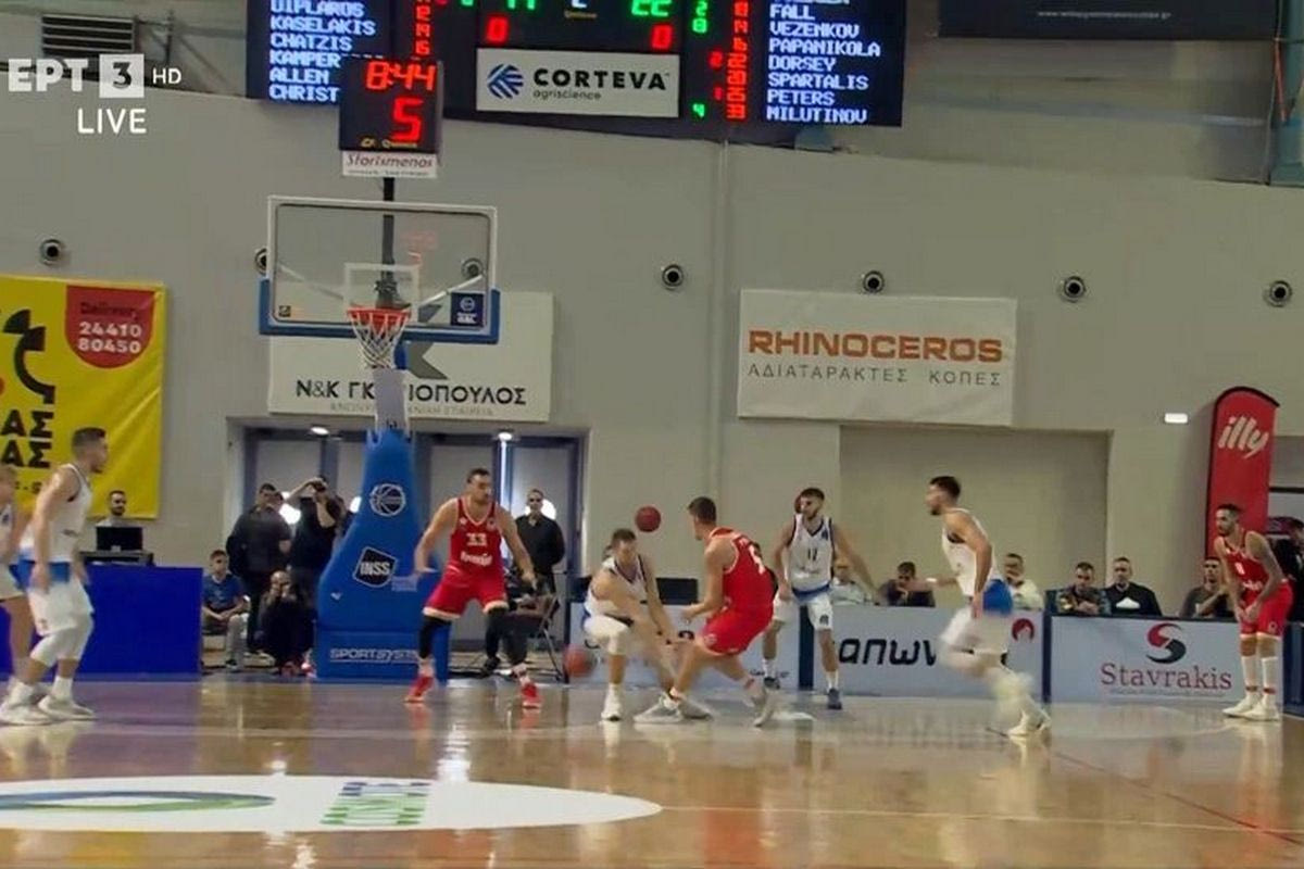 Καρδίτσα – Ολυμπιακός: Ο Λαρεντζάκης πέρασε ασίστ κάτω από τα πόδια του Χρηστίδη και ο Μιλουτίνοβ κάρφωσε ανενόχλητος