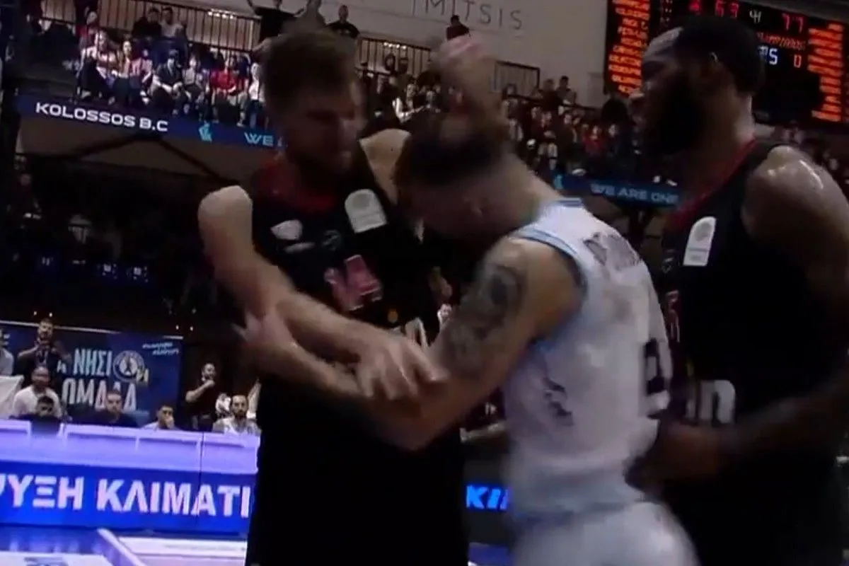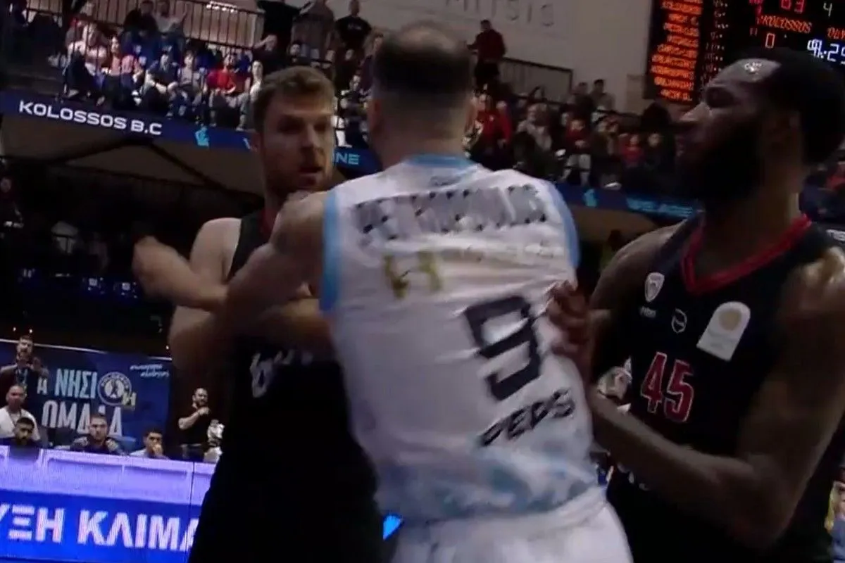 Σοβαρό επεισόδιο έλαβε χώρα στην τέταρτη περίοδο του Κολοσσός – Ολυμπιακός. Είχαμε συμπλοκή ανάμεσα σε Αντρέα Πετρόπουλο και Σάσα Βεζένκοβ. O Πετρόπουλος έσπρωξε τον Βεζένκοβ, ο Βεζένκοβ έκανε κίνηση να χτυπήσει τον παίκτη της Ρόδου, υπήρξε σύρραξη, ευτυχώς χωρίς κάτι περισσότερο, με τους ψυχραιμότερους να επεμβαίνουν και να σταματάνε τον καυγά.