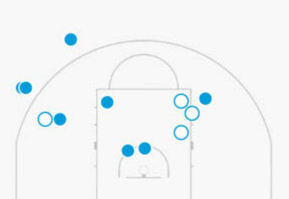 Παρατηρείτε κάτι στο shooting chart του από τους τρεις αγώνες; Για να μην ψάχνετε, θα σας πούμε ότι στον ημιτελικό του Κυπέλλου Ελλάδος άλλαξε άρδην το σημείο από το οποίο κλήθηκε να εκτελέσει. Ο Τσάβι Πασκουάλ αποφάσισε να του δώσει την μπάλα, κι όχι να τον στείλει στην περιφέρεια για να σκοράρει για τρεις. Με τον Αλεσάντρο Τζεντίλε να μην μπορεί να εκμεταλλευτεί τη δύναμή του κοντά στο καλάθι, ο… κλήρος έπεσε στον Κέι Σι Ρίβερς.