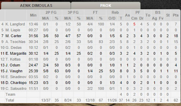Ο τίτλος θα “πάει” στον Μαρκ Κάρτερ… Συνολικά πέτυχε 18 πόντους και ήταν αυτός που έκανε με δύο σερί τρίποντα το 49-42 και το 49-45 κρατώντας τον ΠΑΟΚ “ζωντανό” στο παιχνίδι καθώς ο “Δικέφαλος” ήταν βρεθεί στο -10 (49-39) στο 31′. Μάλιστα με τρίποντο έκανε το 60-62 στα 53” πριν το τέλος του αγώνα.