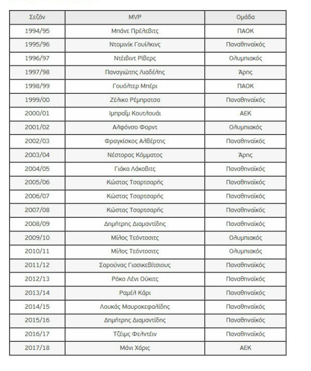 Το βραβείο του MVP μπήκε στη ζωή μας το 1995 και ο Μπάνε Πρέλεβιτς υπήρξε ο πρώτος που αναδείχθηκε πολυτιμότερος παίκτης ενός τελικού, ενώ πέρσι ο Μάνι Χάρις ακολούθησε τα χνάρια του νυν προέδρου της ΚΑΕ ΠΑΟΚ. Ο Κώστας Τσαρτσαρής, όμως, έχει τα περισσότερα βραβεία MVP στο παλμαρέ του, καθώς τρεις φορές αναδείχθηκε πολυτιμότερος παίκτης του τελικού.