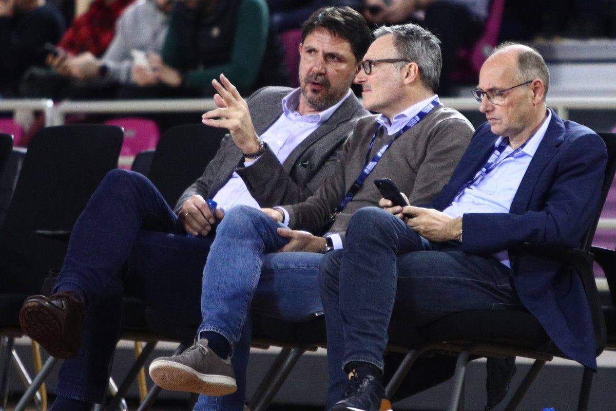 Ο πρόεδρος της ΕΟΚ, Βαγγέλης Λιόλιος, ο CEO του Basketball Champions League, Πατρίκ Κομνηνός και ο Γενικός Διευθυντής του ΕΣΑΚΕ, Ευθύμης Ρεντζιάς έδωσαν το παρών στο γήπεδο του Ηρακλείου, με τους τρεις άνδρες να κάθονται μαζί και να δείχνουν ότι το μπάσκετ είναι ενωμένο.