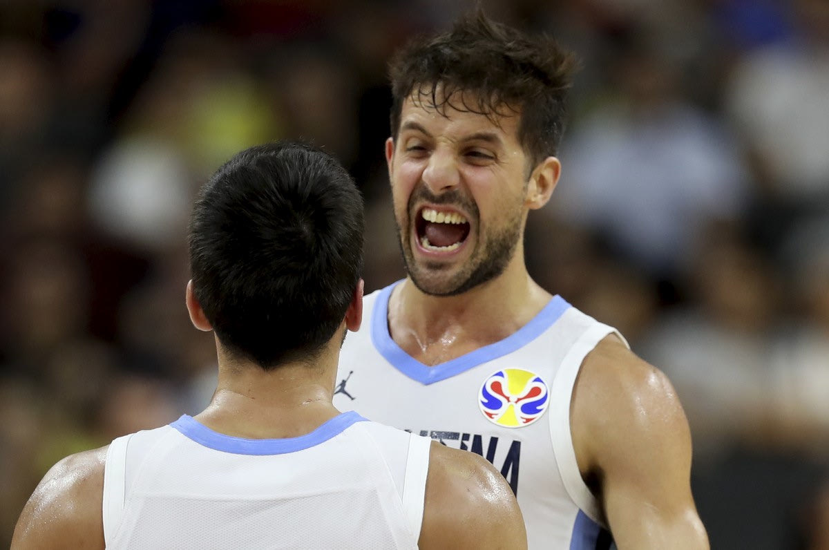 Ο Νίκολας Λαπροβίτολα πανηγυρίζει με τον Φακούντο Καμπάσο στο Παγκόσμιο Κύπελλο του 2019