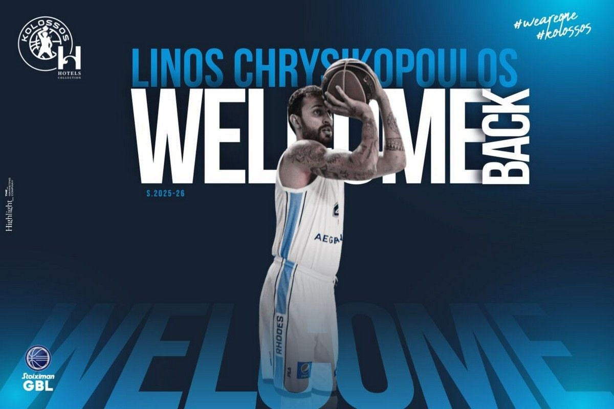 “Η ΚΑΕ Κολοσσός H Hotels Collection ανακοινώνει τη συμφωνία της με τον Λίνο Χρυσικόπουλο, που επιστρέφει στην ομάδα μας έπειτα από δύο χρόνια.