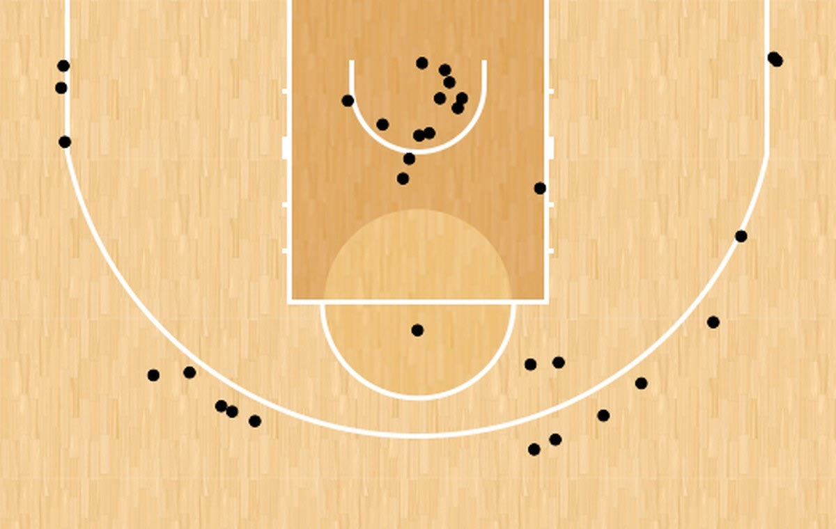 Σύμφωνα με το InStat Scout, ο Ξανθόπουλος μπορεί να έχει σημειώσει μέχρι στιγμής 25 πόντους έπειτα από 7 αγώνες, αλλά έχει μοιράσει άλλους 118 (!) που μεταφράζονται σε 16.85 πόντους ανά αγώνα. Όπως φαίνεται μάλιστα και από το Shot Chart των εύστοχων σουτ που έχουν προκύψει από ασίστ του (δεν έχουν συμπεριληφθεί ακόμα τα εύστοχα σουτ κόντρα στο Λαύριο), δεν έχει πρόβλημα να μοιράσει την μπάλα οπουδήποτε στο παρκέ. Όχι πως υπήρχε ποτέ τέτοιο θέμα.