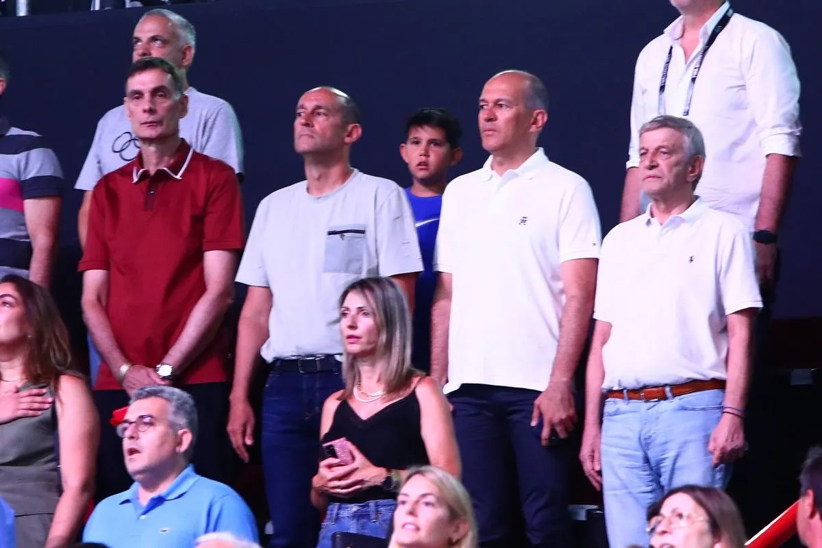 Ο Γιώργος Μπαρτζώκας, Παναγιώτης και Γιώργος Αγγελόπουλος και Γιώργος Σκινδήλιας έδωσαν το "παρών" στο ΣΕΦ για τον τελικό της Ελλάδας με την Κροατία για το Προολυμπιακό Τουρνουά.