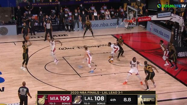 Το άστοχο σουτ του Ντάνι Γκριν και το λάθος του Μαρκίφ Μόρις. Δείτε όλα όσα έγιναν στην κρίσιμη τελευταία επίθεση των Λέικερς κόντρα στους Χιτ στο Game 5 των τελικών.