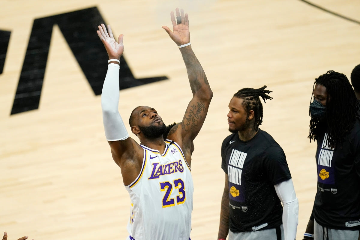 Ο ΛεΜπρόν Τζέιμς λίγο πριν από το ματς με τους Σανς ⓒ 2021 Ross D. Franklin/Associated Press