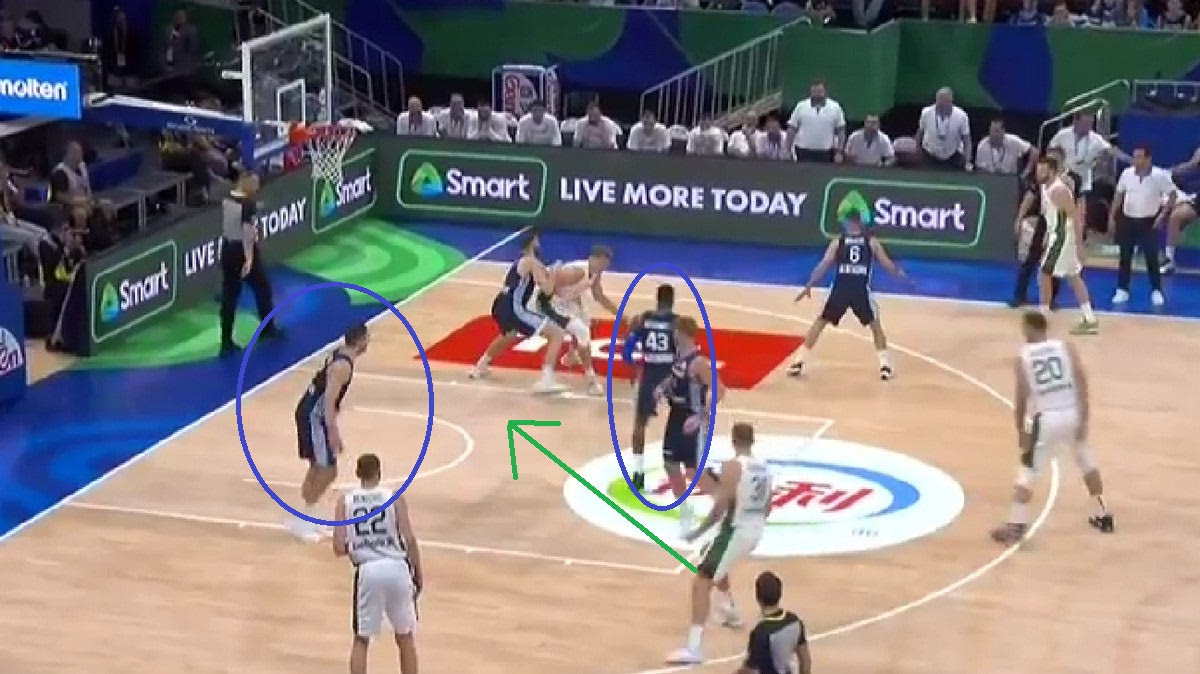 Η Λιθουανία ξεκίνησε – όπως αναμενόταν – με τον Βαλαντσιούνας πάνω στον Θανάση Αντετοκούνμπο και τον Σεντεκέρσκις πάνω στον Παπαγιάννη. Αυτό δεν άλλαξε την στόχευση της Ελλάδας, που απλώς έπαιζε Pick and Roll με τον Θανάση ως σκρινέρ. Με τις αποστάσεις να μην είναι όμως καλές, ο Θανάσης – και ο Λούντζης – πέρασαν στον πάγκο για χάρη των Παπαπετρου και Λαρεντζάκη αντίστοιχα. Τότε ήρθε το καλύτερο σημείο της Εθνικής.