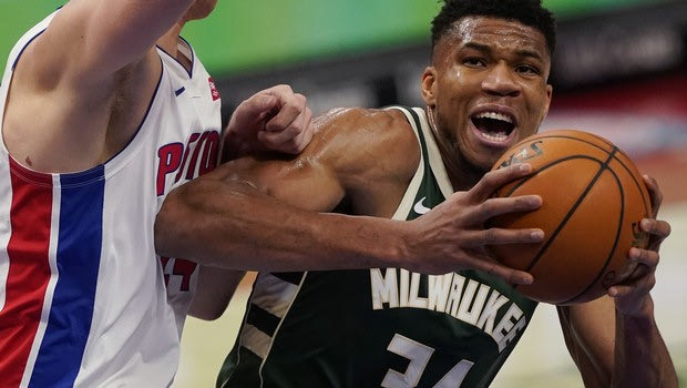 Ο Γιάννης Αντετοκούνμπο σε φάση από αναμέτρηση Πίστονς - Μπακς (13/1/2021)