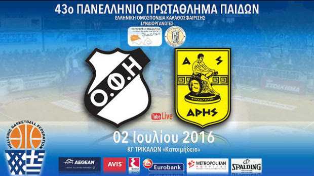Παρακολουθήστε LIVE με ήχο και εικόνα τον αγώνα του ΟΦΗ με τον Άρη, για την τελευταία αγωνιστική ημέρα του Πανελληνίου Παίδων που διεξάγεται στα Τρίκαλα.