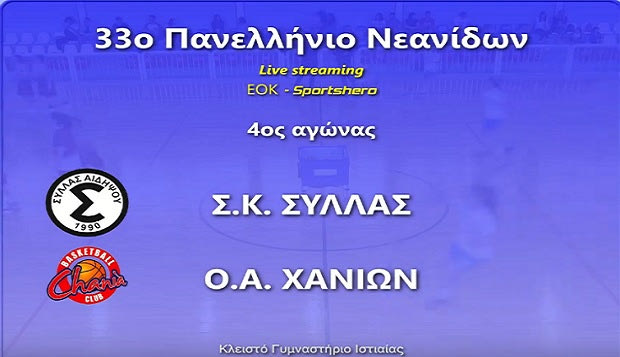 Παρακολουθήστε μέσω LIVE Streaming τον πρώτο αγώνα της δεύτερης ημέρας του πανελλήνιου πρωταθλήματος νεανίδων μεταξύ του Σύλλα Αιδηψού και του ΟΑ Χανίων.