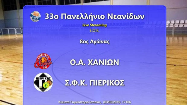 Παρακολουθήστε μέσω LIVE Streaming την αναμέτρηση Χανιά - Πιερικός Αρχέλαος για την 3η αγωνιστική της τελικής φάσης του Πανελληνίου Πρωταθλήματος Νεανίδων.