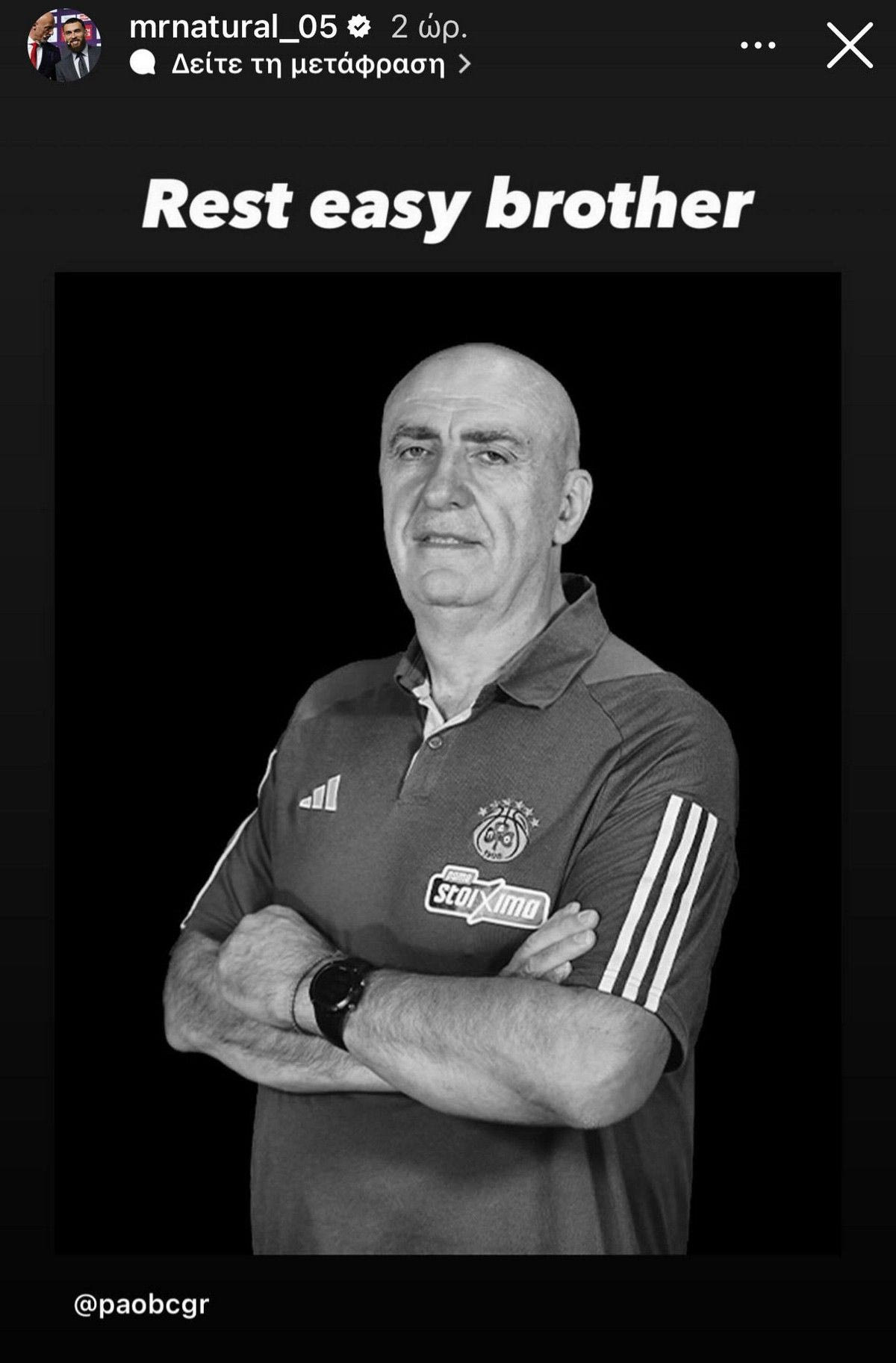 Ο σούπερ σταρ της Μονακό αποχαιρέτησε, μέσω story στο Instagram, τον φροντιστή του Παναθηναϊκού και έγραψε “Αναπαύσου εν ειρήνη αδερφέ μου”.