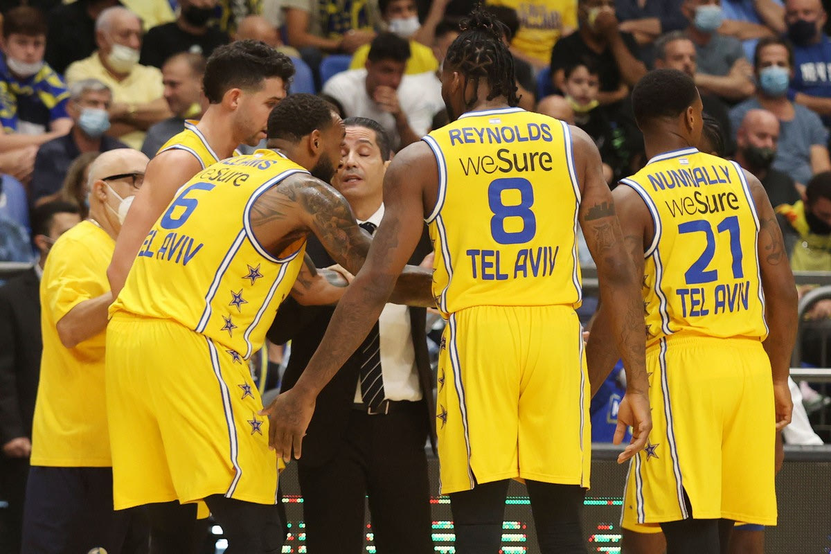Ο Γιάννης Σφαιρόπουλος δίνει οδηγίες στους παίκτες της Μακάμπι
