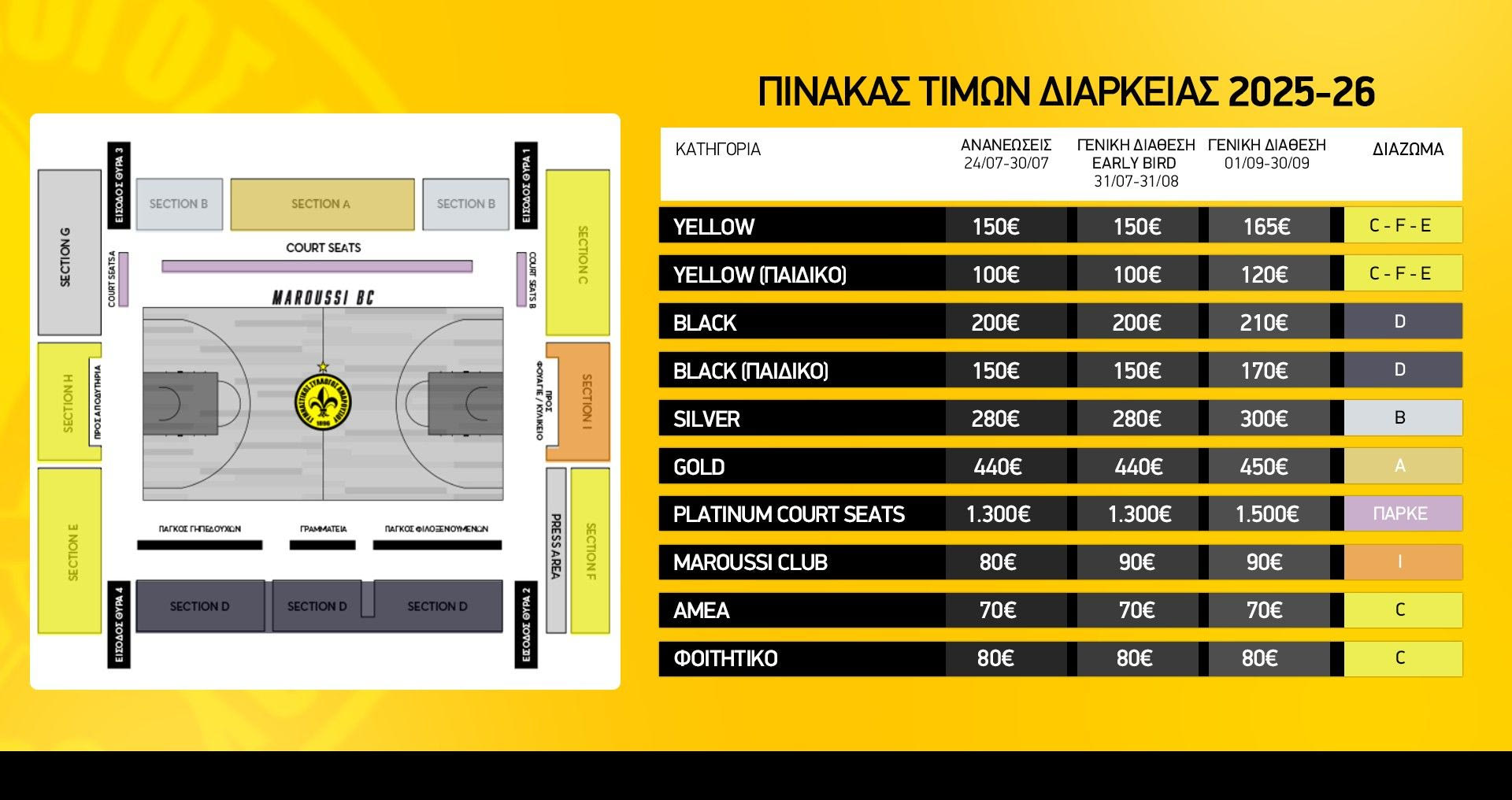 Το Μαρούσι ανακοίνωσε την έναρξη της διάθεσης των εισιτηρίων διαρκείας και η αρχή γίνεται με τις ανανεώσεις των εισιτηρίων των κατόχων της σεζόν 2024/25.