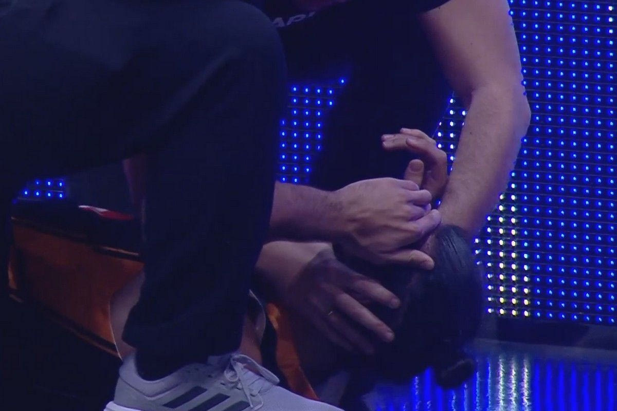 Κατά τη δεύτερη περίοδο της αναμέτρησης, ο Σίλβιο ΝτεΣόουζα σκόραρε για το 24-21 του Αμαρουσίου, όμως στην προσπάθειά του χτύπησε στο πρόσωπο τον Αντώνη Καραγιαννίδη, με τον Έλληνα φόργουορντ να βρίσκεται στο έδαφος τραυματισμένος.