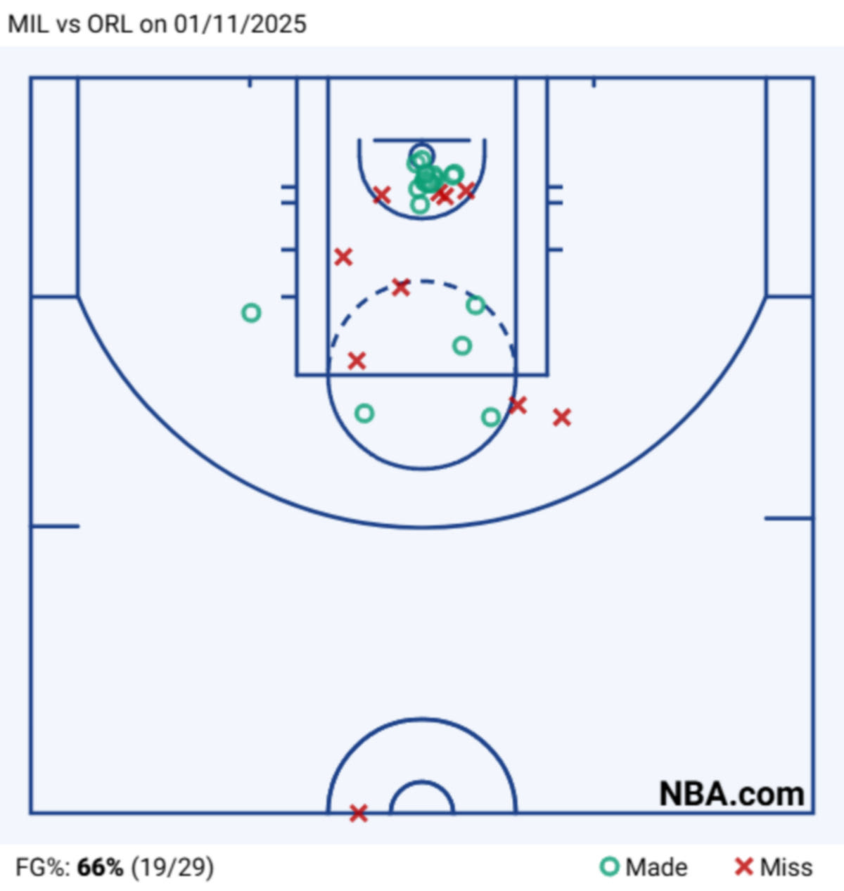Στο 22-18 έπεσαν οι Μάτζικ (14-6 εντός και 9-11 εκτός έδρας), με τον Πάολο Μπανκέρο να επιστρέφει μετά από απουσία δύο μηνών, να κάνει εκπληκτική δουλειά στον περιορισμένο χρόνο που έμεινε στο παρκέ (34 πόντοι σε 26:32), αλλά την καταπληκτική φέτος ομάδα του να μην έχει αρκετό βάθος και κορμιά για να περιορίσει τον Αντετοκούνμπο. Ο Τζέιλεν Σαγκς έμεινε εκτός εξαιτίας ενοχλήσεων στη μέση, Κόουλ Άντονι και Άντονι Μπλακ προσπάθησαν να τον καλύψουν, όμως με τους αδελφούς Βάγκνερ σε φάση αποθεραπείας, το Μιλγουόκι ήταν απλά πιο γεμάτο και χρειαζόταν περισσότερο το αποτέλεσμα.