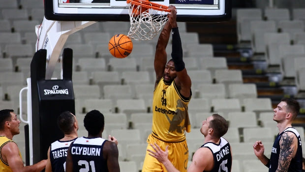 Ο Μάρκους Σλότερ καρφώνει στο καλάθι της Τμόκι Μινσκ