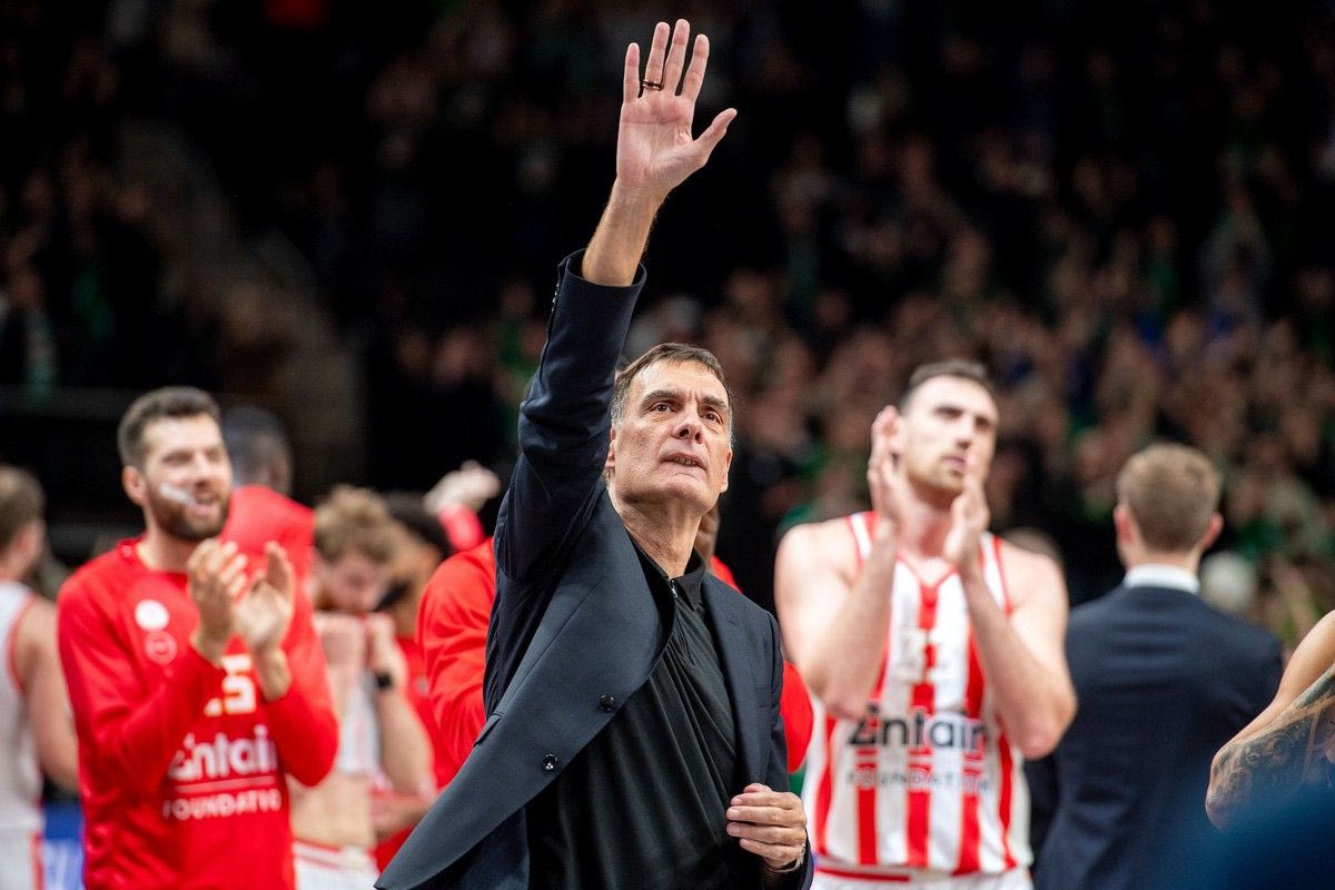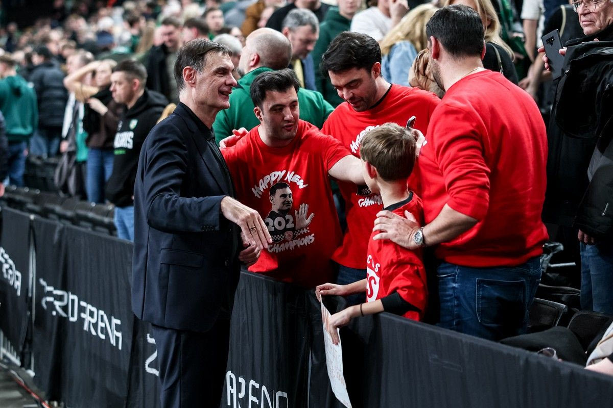 Και αυτό γιατί βρέθηκαν στο πλευρό της ομάδας 60 φίλοι των Πειραιωτών που γιόρτασαν μαζί με τους παίκτες στο φινάλε την εκτός έδρας νίκη με 92-85, με έναν μάλιστα φίλαθλο του Ολυμπιακού να κλέβει την παράσταση με το μπλουζάκι “Μπαρτζώκας 2025” και την παλάμη του τρις κορυφαίου προπονητή της Euroleague αντί για το “5”.