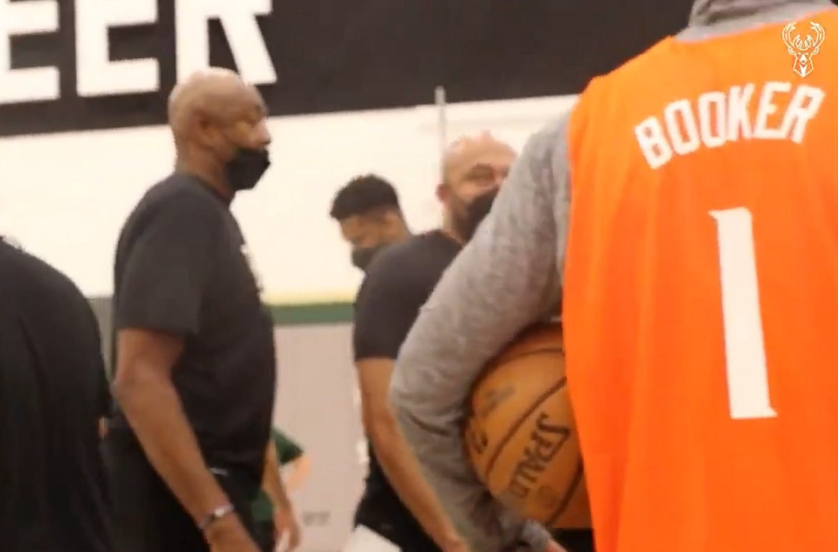 Πολ, Μπούκερ, Μπρίτζες, Κράουντερ βρίσκονται στις προπονήσεις των Μπακς στη διάρκεια των NBA Finals, μεταφορικά βέβαια, καθώς άνθρωποι της ομάδας του Μιλγουόκι φορούσαν τις εμφανίσεις τους.