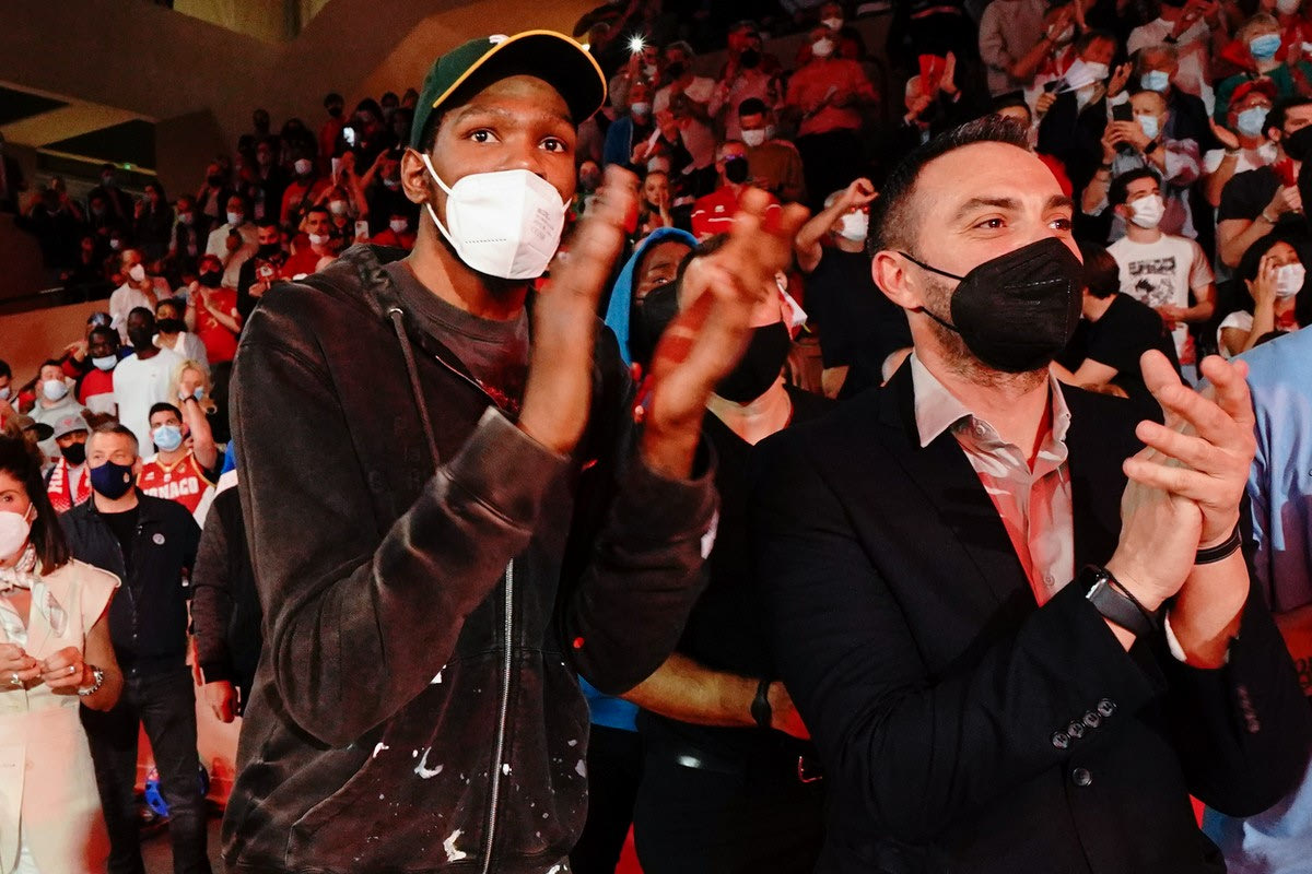 Λίγα δευτερόλεπτα μετά τη νίκη - ισοφάριση της Μονακό επί του Ολυμπιακού, ο Κέβιν Ντουράντ συνεχάρη με μια χειραψία και μια αγκαλιά τον Μάικ Τζέιμς.