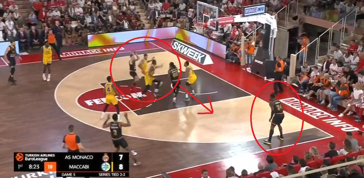 Πολλές φορές ωστόσο η Μονακό μπορεί να κάνει σκριν ανάμεσα σε γκαρντ, για να σημαδέψει συγκεκριμένο περιφερειακό των αντιπάλων της, κάτι που λογικά θα κάνει και με τον Σλούκα στον ημιτελικό. Ιδού ένα παράδειγμα: