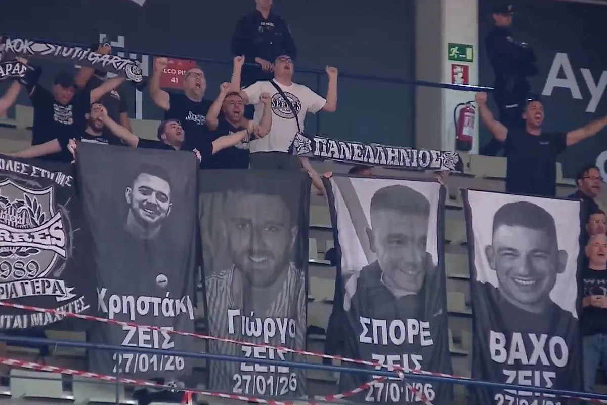 Μούρθια – ΠΑΟΚ: Οι οπαδοί του Δικεφάλου σήκωσαν πανό για τους αδικοχαμένους φίλους της ομάδας μετά τη σπουδαία πρόκριση