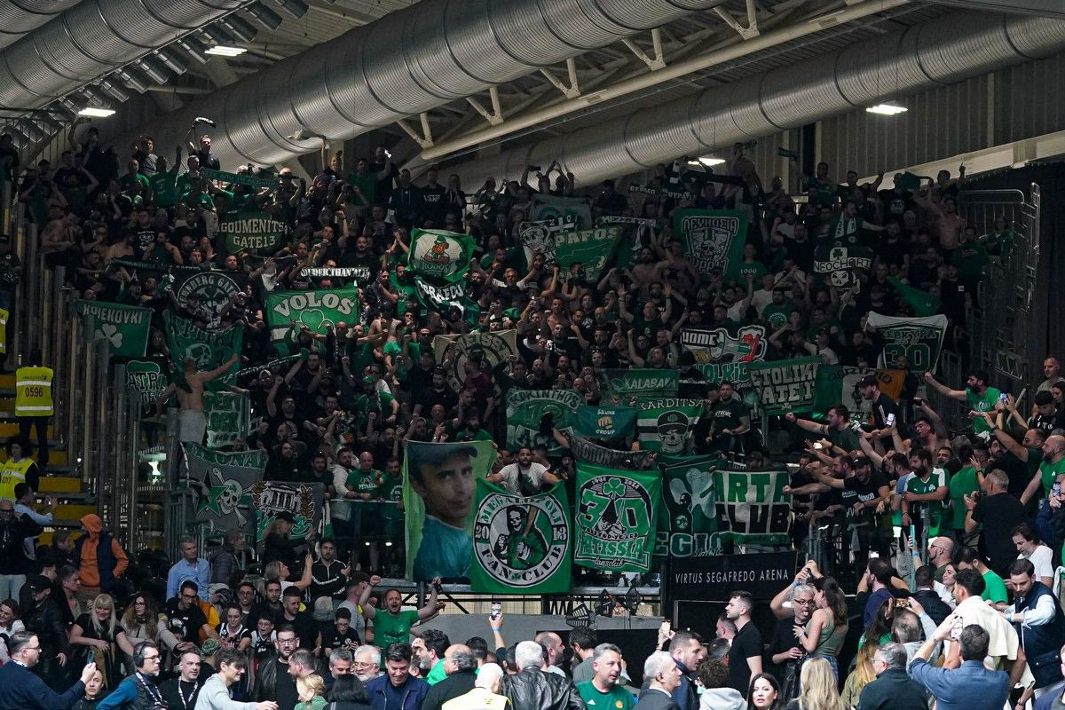 Οι φίλοι του Παναθηναϊκού που βρέθηκαν στη Segafredo Arena αποθέωσαν τον 29χρονο άσο, τραγουδώντας “και στο Βερολίνο θα είναι ωραία, με το έβδομο παρέα”.
