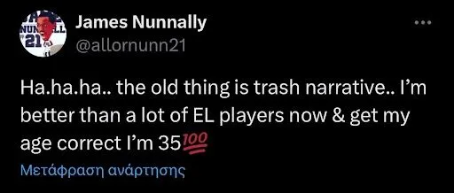 Ο Τζέιμς Νάναλι απάντησε σε ένα σχόλιο στο Twitter, με τον ίδιο να υποστηρίζει πως θεωρεί τον εαυτό του ανώτερο από τους παίκτες που αγωνίζονται αυτήν την στιγμή στην EuroLeague.