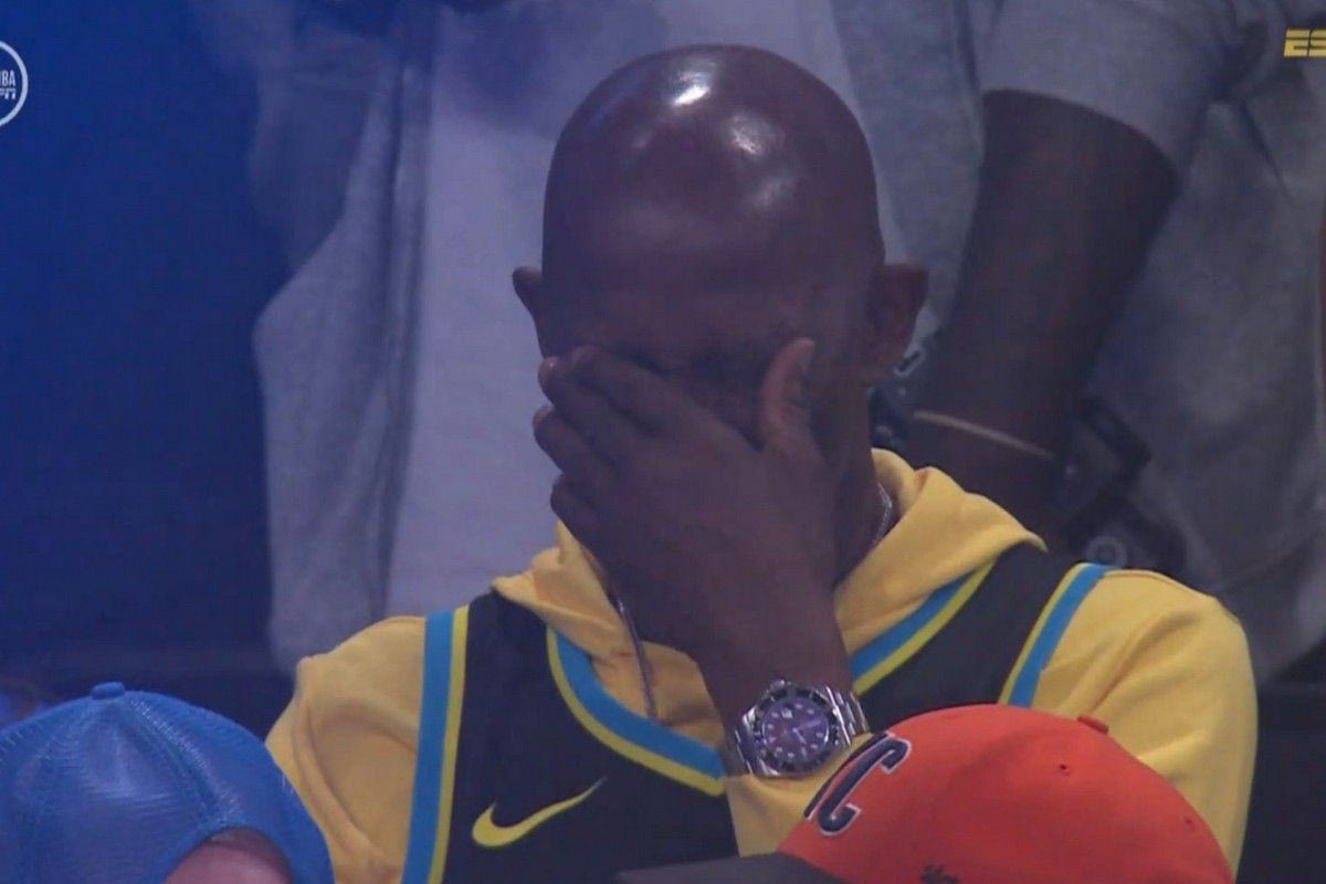 Σοκαρισμένος ο πατέρας του Ταϊρίς Χαλιμπάρτον από τον τραυματισμό του γιου του, με την κάμερα να τον πιάνει να προσπαθήσει να συγκρατήσει τα δάκρυά του στην όψη του σταρ των Πέισερς να σφαδάζει από τον πόνο.