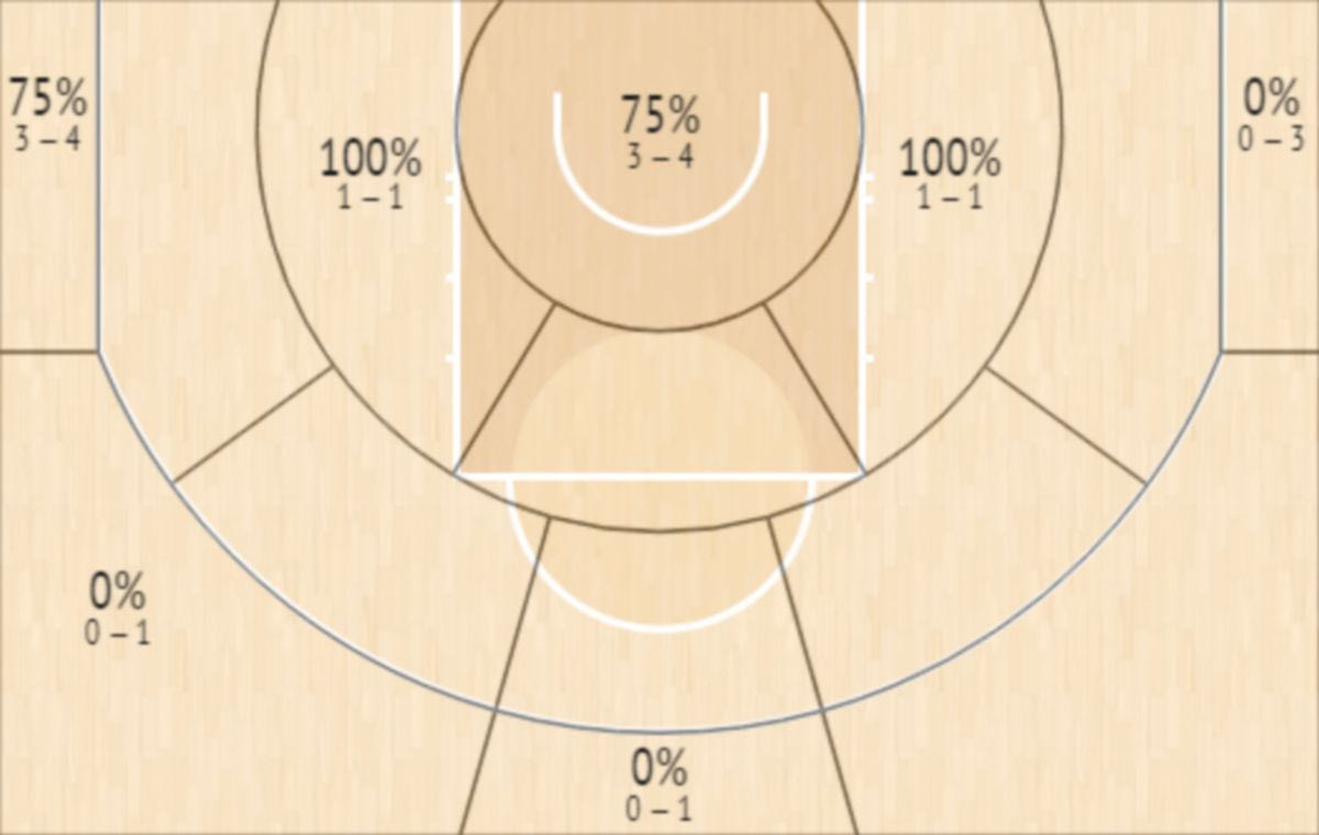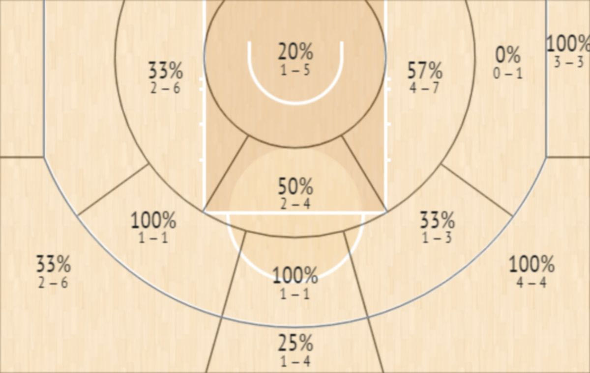 Το Shot Chart του Μικάλ Μπρίτζες στον αγώνα των Σανς με τους Μπακς InStat Scout