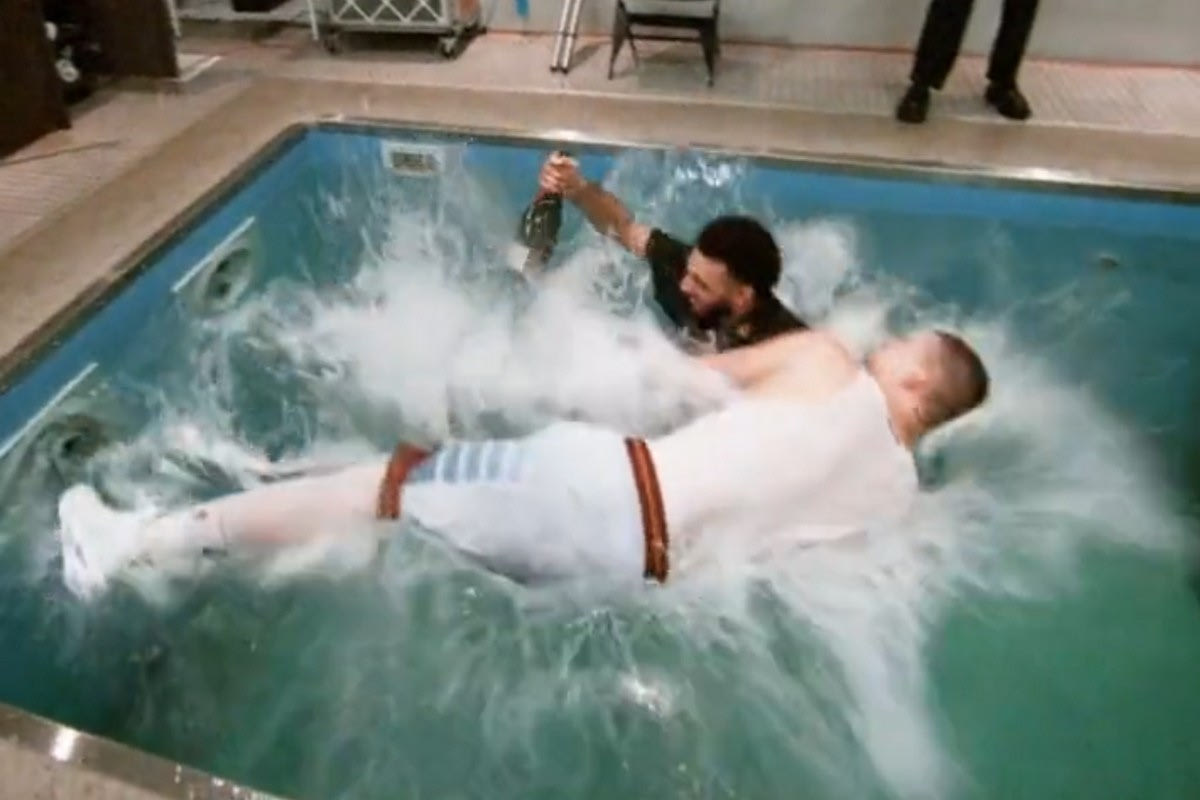 Με το κέφι να έχει φτάσει στο πικ του, ο Σέρβος σταρ πήρε… σηκωτό τον Τζαμάλ Μάρι και τον έριξε στην πισίνα, πέφτοντας φυσικά και αυτός μαζί του, σε μία υπέροχη στιγμή.