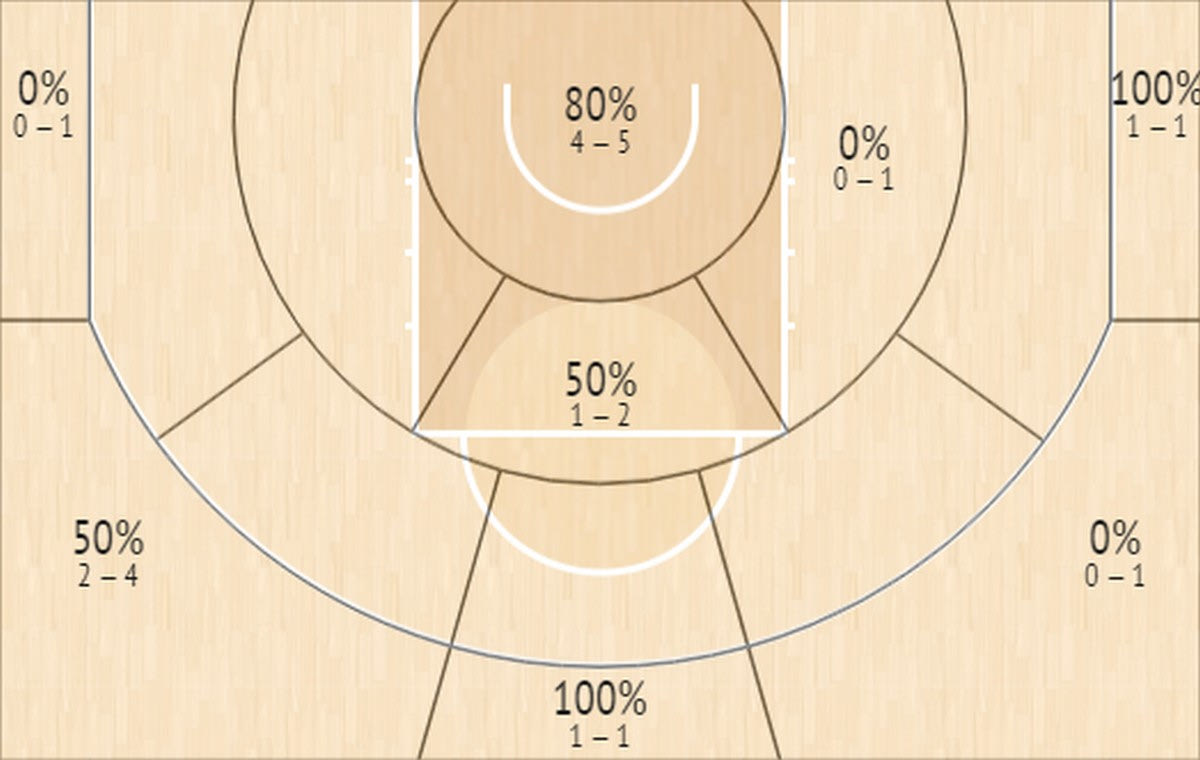 Ο Μπράουν είναι ένας παίκτης που συνήθως σκοράρει βασισμένος σε plays που βγαίνουν όταν βρίσκεται σε κίνηση. Στο Game 3 σκόραρε πόντους σε αυτή την λογική. Το βασικό ωστόσο στην περίπτωσή ήταν η επιθετικότητα που έβγαλε προς το καλάθι, όπως φαίνεται και στο Shot Chart του από το παιχνίδι, όπου φαίνεται ότι πήρε 5 προσπάθειες στο “ζωγραφιστό”.