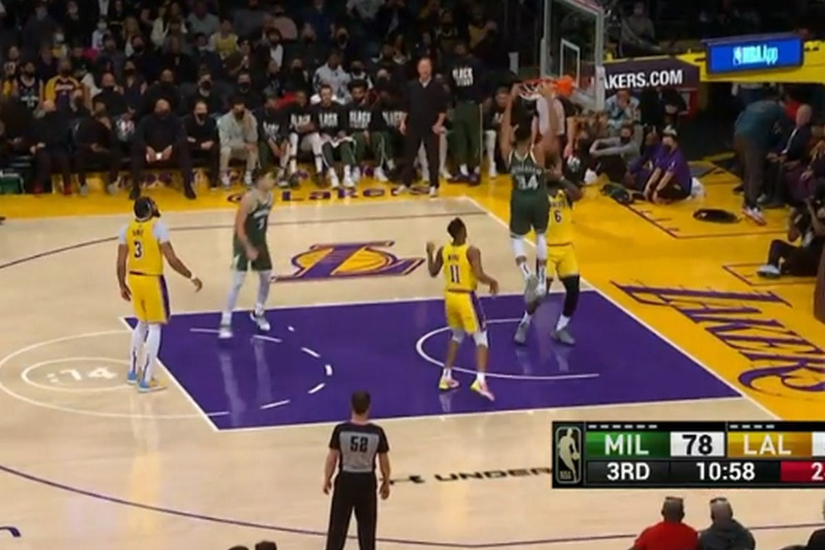 Σε μία φάση βγαλμένη από το πινακάκι του Μάικ Μπουντενχόλζερ, ο Μίντλετον έκανε την επαναφορά από την πλάγια γραμμή και βρήκε τον Γιάννη κάτω από το καλάθι με ωραία alley oop πάσα, με τον “Greek Freak” να καρφώνει στο καλάθι των Λέικερς.