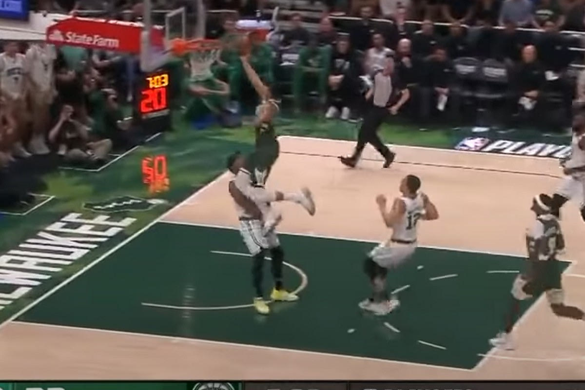 Μία από αυτές τις φάσεις ήρθε στην δεύτερη περίοδο, όταν έτρεξε στο ανοιχτό γήπεδο και τελείωσε τον αιφνιδιασμό με ένα αυτοκρατορικό λέι-απ, ισοπεδώνοντας στο μεσοδιάστημα τον Μάρκους Σμαρτ, με τον γκαρντ των Σέλτικς να χρεώνεται και με φάουλ επειδή δεν πρόλαβε να στηθεί για επιθετικό φάουλ.