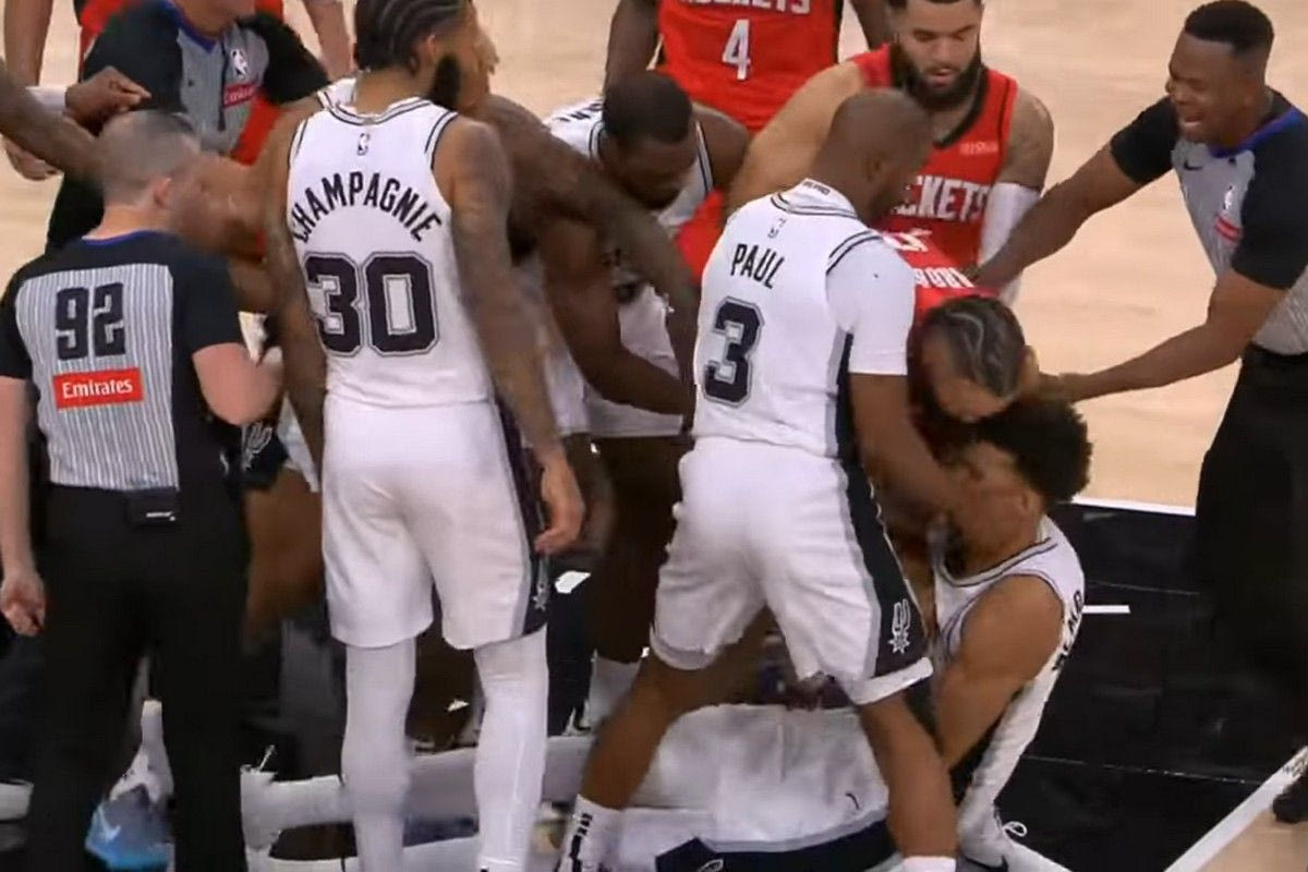 Οι Σπερς λύγισαν τους Ρόκετς (109-106) χάρη στην 29αρα του Βικτόρ Γουεμπανιαμά. Κατά την διάρκεια του αγώνα ωστόσο υπήρξε μία φάση που τράβηξε περισσότερο τα βλέμματα, με πρωταγωνιστές τον Γάλλο και τον Ντίλον Μπρουκς, που παρά λίγο να οδηγήσει σε γενικευμένη σύρραξη.