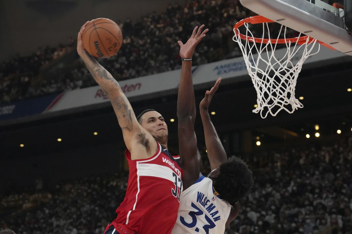 Ισοπεδωτικός ο Κάιλ Κούζμα, βρήκε διάδρομο στον φιλικό αγώνα των Γουίζαρντς με τους Γουόριορς και έκανε πόστερ τον Τζέιμς Γουάισμαν, καρφώνοντας εντυπωσιακά στο πρόσωπό του.
