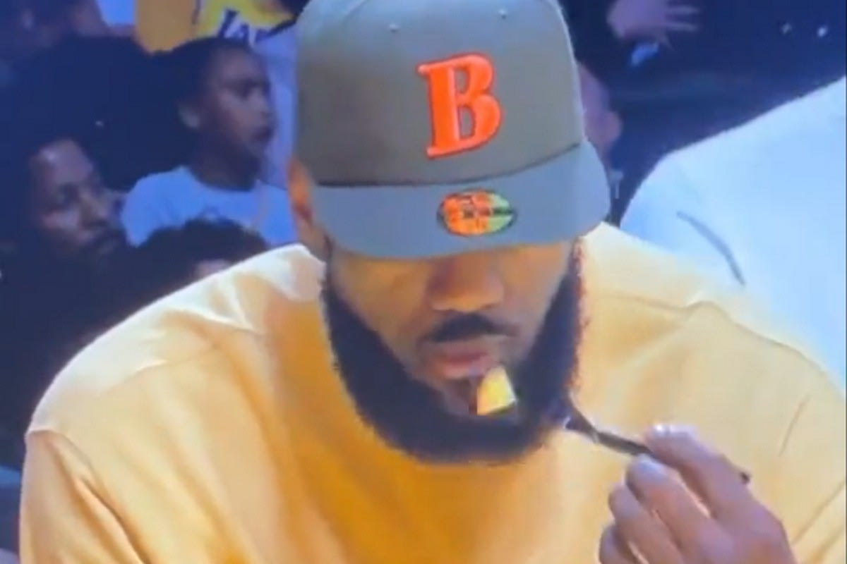 Ο ΛεΜπρόν Τζέιμς καθόταν χαλαρός στον πάγκο των Λέικερς στο δεύτερο μέρος του αγώνα με τους Γουόριορς έχοντας παίξει 18 λεπτά στις δύο πρώτες περιόδους και έβγαλε ένα τάπερ με φρούτα, ξεκινώντας να τρώει.
