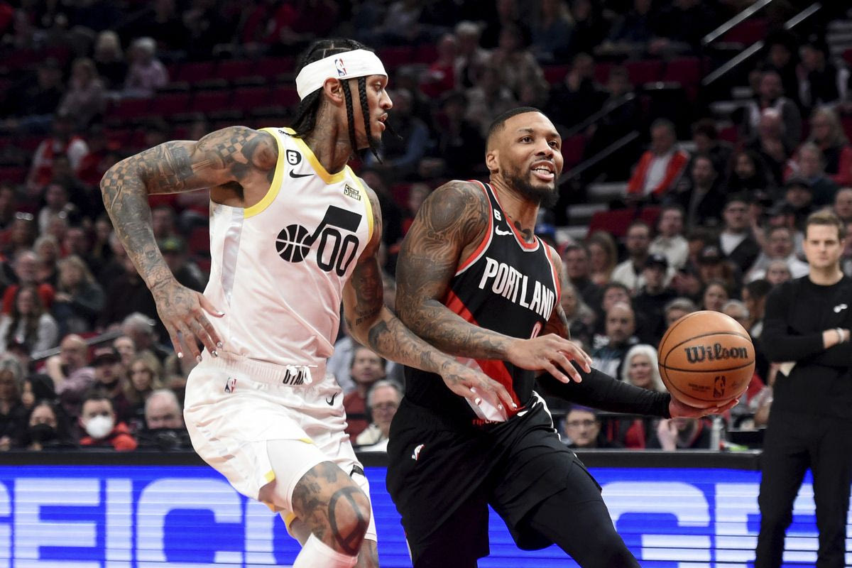 Ο Ντέμιεν Λίλαρντ σε αγώνα των Μπλέιζερς με τους Τζαζ ⓒ 2023 Steve Dykes/ Associated Press